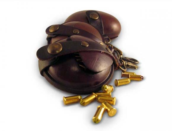 Praktisk handgjord dosa i läder för förvaring av t.ex skott till apportkastare och startpistol.