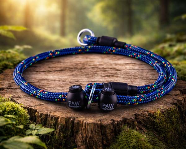 PAW of Sweden Halsband Stoppers Original är ett svensktillverkat hundhalsband – skapat för flexibilitet i ett och samma halsband. Justera de reglerbara stopperna och växla enkelt mellan fast fästpunkt, halvstrypsfunktion eller ren dressyrlänk.